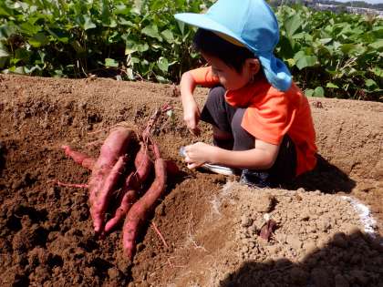 先日、よく晴れた秋の日に芋掘り遠足に行きました。