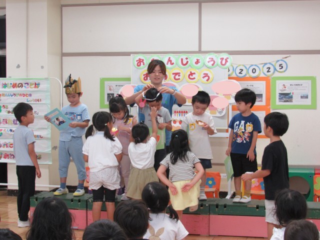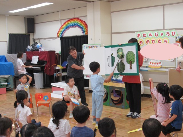 9月26日 9月の誕生会 公開日 2025/09/30 更新日 2025/09/30 園日記 9月生まれの友達の誕生会では、「どんな色がすき?」の歌に合わせ、園長先生、手作りの色が変わるマジックボードを皆で楽しみました。 +3