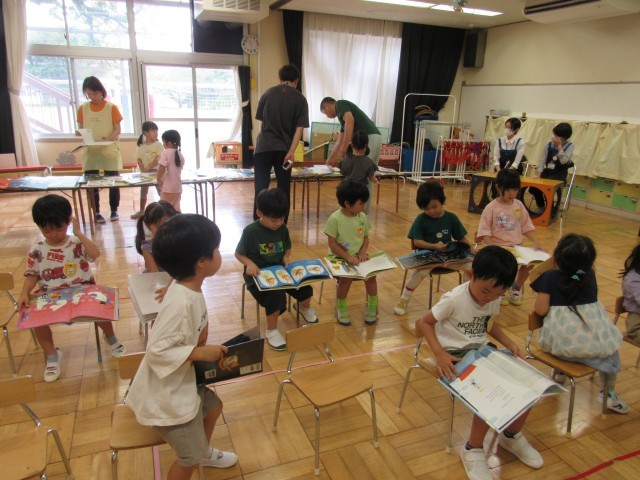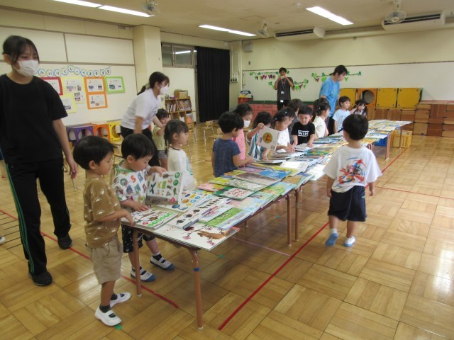 9月29日 図書館体験 公開日 2025/09/30 更新日 2025/09/30 園日記 中央図書館の方が園児のために200冊もの絵本を選んでもってきてくださいました。なかよし園のホールはミニミニ図書館に!一人一人が目を輝かせ、2冊ずつ選んで、バーコードで読み込みもしてもらいました。お借りした本は、どの学級でもローテーションしながらじっくり読み味わっていきたいと思います。 +3