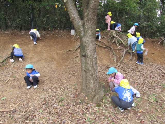 お弁当の後には近くの広場でドングリ拾いなども楽しみました。