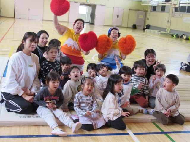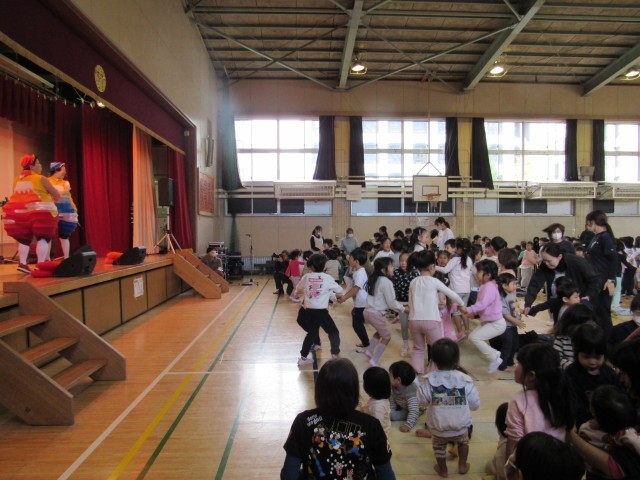保育園舎の0歳児から小学校2年生までの友達と一緒に大盛り上がりでした。
