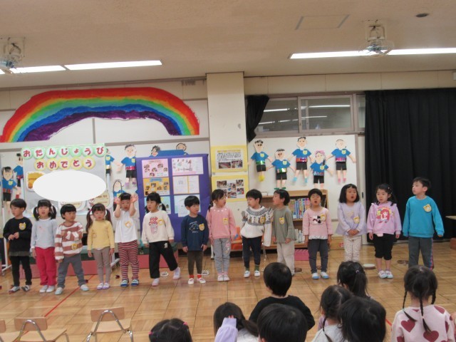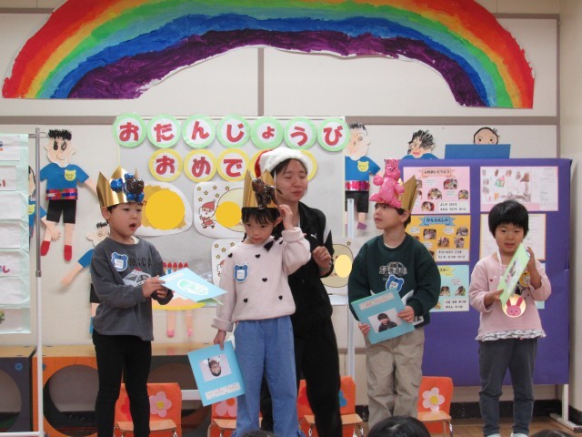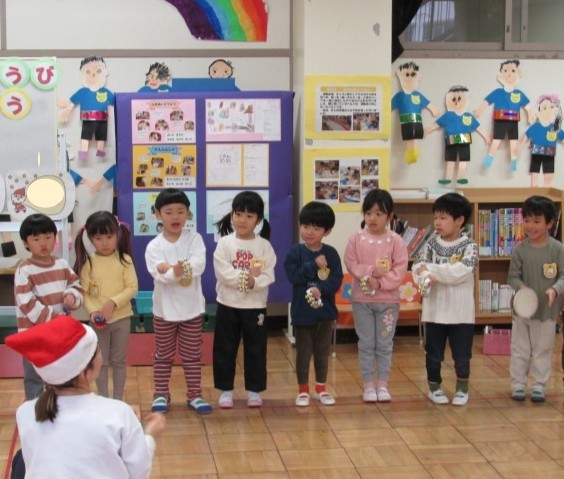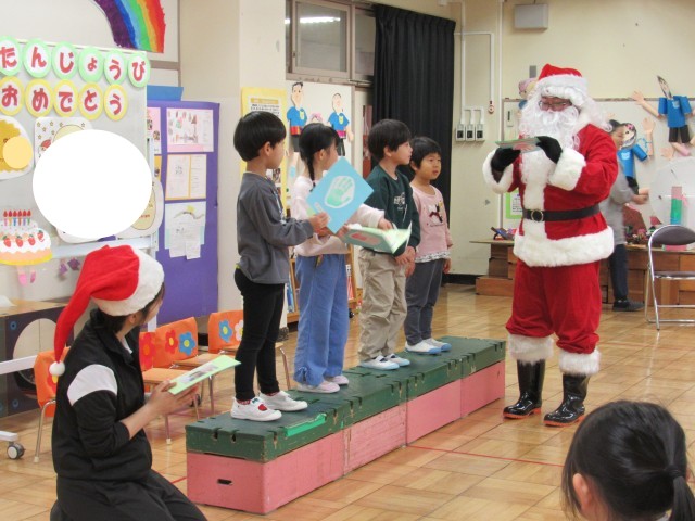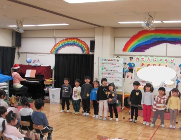 12月24日 12月誕生会 公開日 2025/12/24 更新日 2025/12/24 園日記 今日は12月うまれの友達の誕生会を行いました。 園長先生のお楽しみや、4歳の歌や合奏をきいて楽しみました。 +5