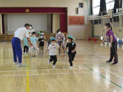 ちゅうりっぷ組、たんぽぽ組、すみれ組のみんなにいろいろな運動を教えてくれるみんなの大好きな先生です。