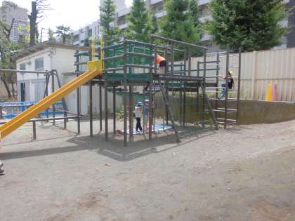 工事中の園庭のわきで元気に外で遊ぶ子供たちを発見!!