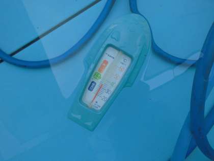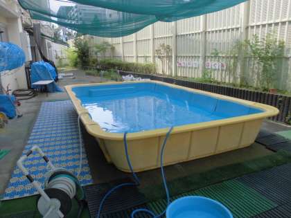 真水をプールに入れると水温が低すぎるので、なかよし園のプールは、お湯も入れています。