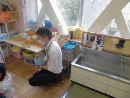 さて、今日は、指導課訪問と言いまして、年1回 教育委員会がなかよし園及び、小学校の視察を行う日です。