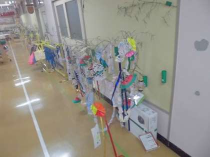 明日は、いよいよ七夕です。また、3年ぶりの夏祭りも行われます。笹の準備も万端です!!
