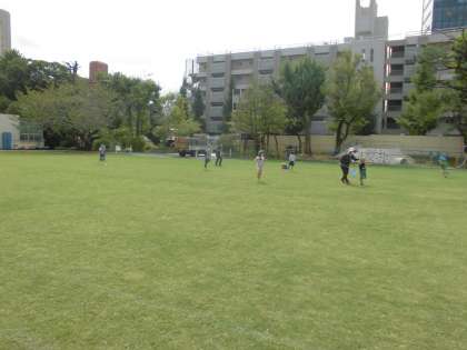 今日も子供たち 元気いっぱいに芝生の園庭を駆け回っています。