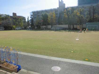 たんぽぽさんが園庭で遊んでいました。 今日も快晴です。