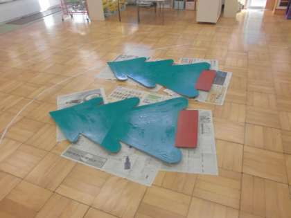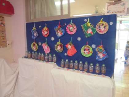 上の写真 すみれ組さんアトラクション型の作品を作って、作品で実際に遊べるものです。