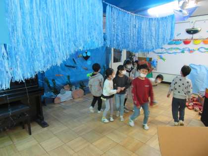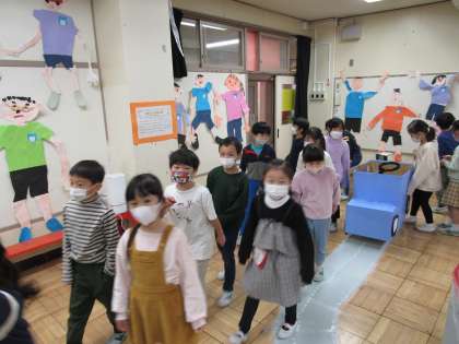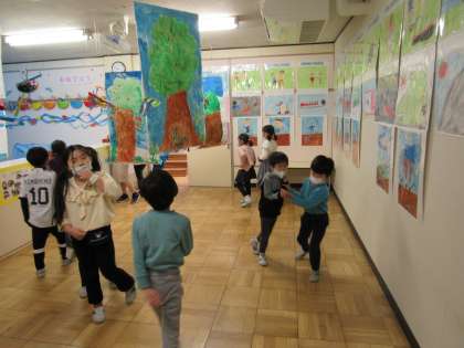 さて、今日は、千駄谷小学校1年生が作品展を見に来てくれました。
