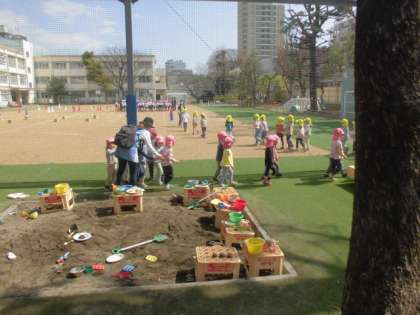 今日の避難は整然としていて、なかよし園の園児も含めて、