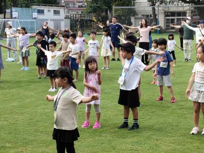 千小の子供たちで60名程度 そして、大人の方やなかよし園の子たち近隣の保育園の子たちも加えると 毎朝 100名程度の参加者があるそうです。