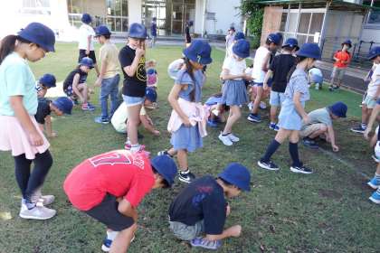 裸足月間を安全に過ごすため、今日は、全校児童で校庭に落ちている危険物 ゴミなどの大掃除をしました。