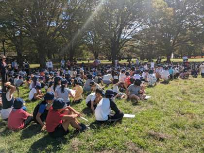 今日は隣の小学校が全校遠足でした。 千駄谷小ではこの時期代々木公園に