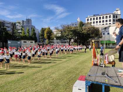 下の写真は全校練習の様子ですが、そこでも なかよし園の運動会が素晴らしかったことを伝えました。