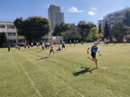 今日も校庭では 今週の運動会に向けて小学生が一生懸命練習に・・