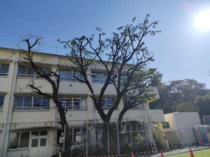 今日は、写真下の木の剪定です