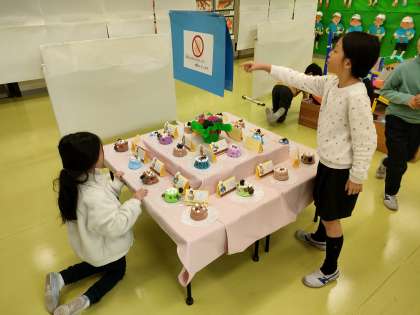 小学校の会議室には、まだ作品が残っています。明日、1年生たちが鑑賞予定