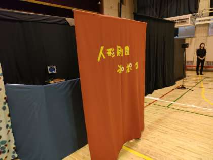 人形劇団ぽぽろのユーモアあふれる人形劇を PTAの皆さんが読んでくださいました。