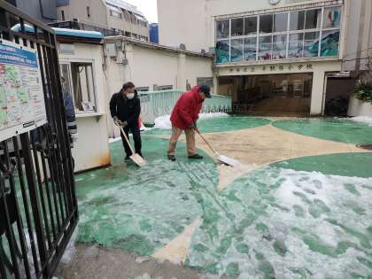 雪かき 先生たちが早くから手伝ってくれました!!