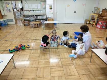 何人かの子どもたちが登園して、すでに遊んでいます。