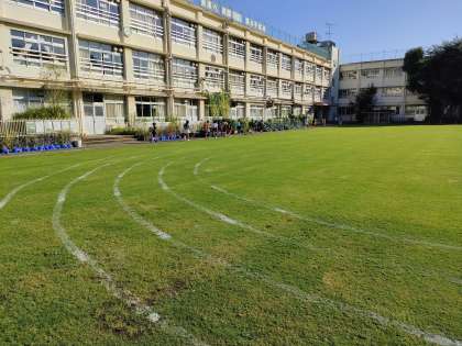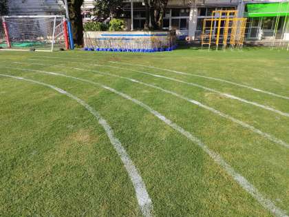 小学校の先生が 月曜日も遅くまで白線を引いてくれていました!!