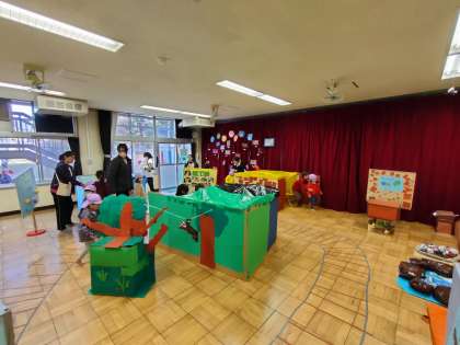 開会式終了後 2歳児の子供たちは、 すみれ組の遊べる展覧会の作品で