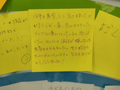 たくさんの感想を書いていただき、 子供たちとご来校していただいた皆さんで作る 共同作品です。