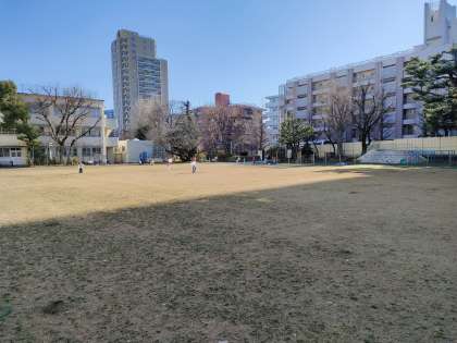 これだけ広い校庭で20名の ちゅうりっぷ組が 凧あげ!!