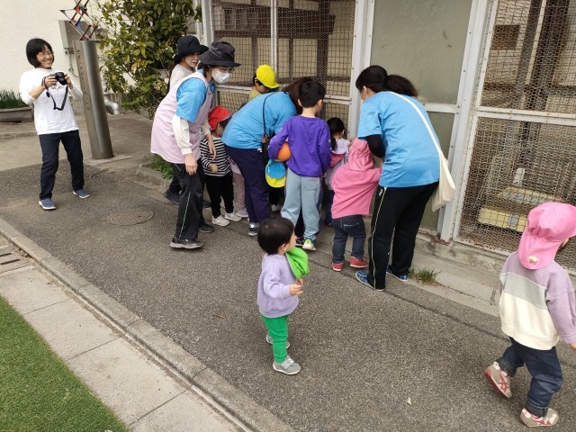 大きい子たちはウサギを見たり 追いかけっこをしたり