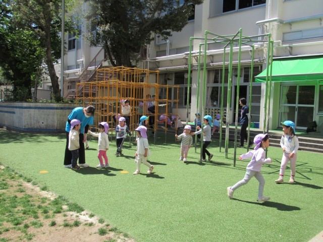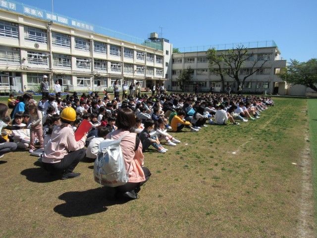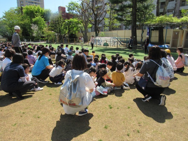 今年度、初めての避難訓練を行いました。なかよし園は併設の千駄谷小学校と一緒に毎月、訓練を行っていきます。