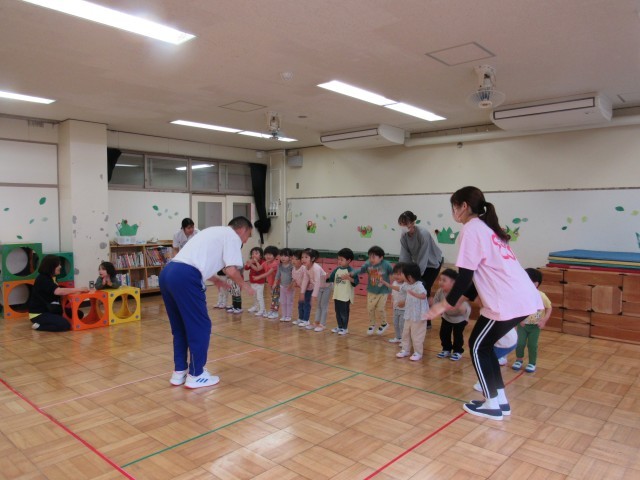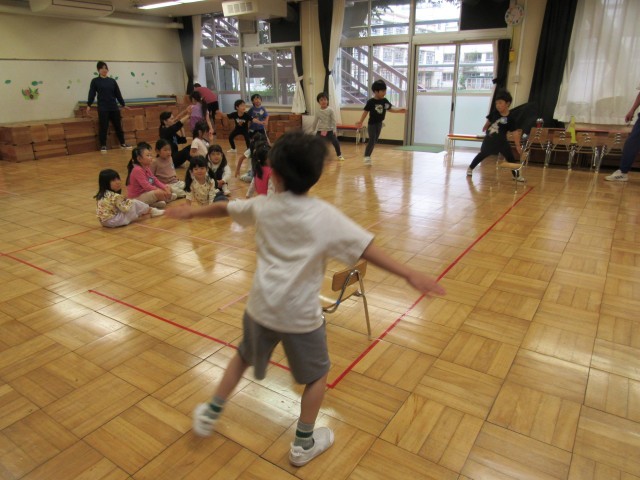 ちゅうりっぷ組は曲に合わせたり、先生の動きを真似っこしたりして様々な動きに挑戦しました。