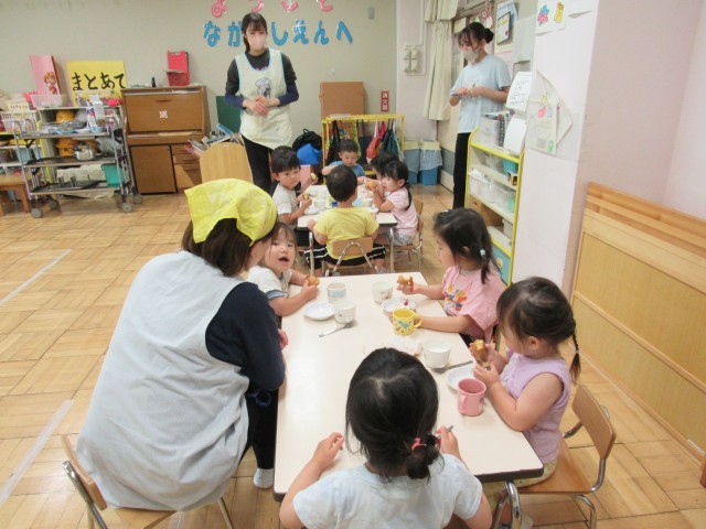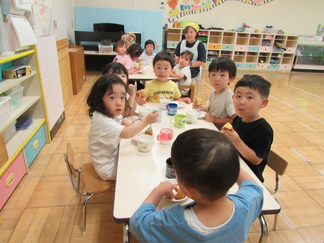 みんなで味わえるように、と区の栄養士さんや調理さんも相談にのってくださり、甘食のおやつの時に