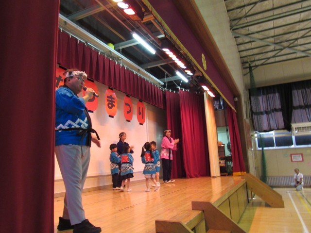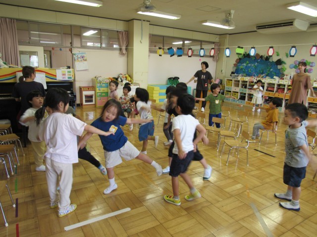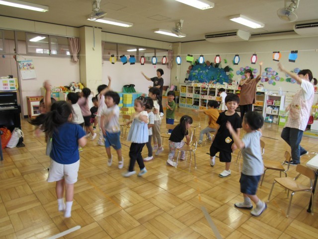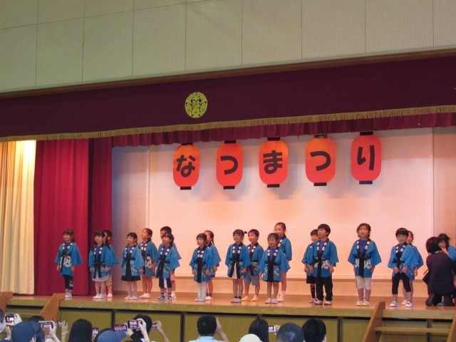 7月9日 ☆夏まつり☆ 公開日 2025/07/08 更新日 2025/07/08 園日記 先日、なかよし園の夏まつりが行われました。保育園舎の0,1,2歳の乳児さんも皆一緒に楽しみました。オープニングは年長すみれ組の歌や踊り「まつりだホイ!」年長さんや園長先生をお手本に、親子や会場の皆一緒に踊って楽しみました。まつりの後の今週、たんぽぽ組では、すみれ組さんみたいに踊りたい!と、学級でまつりだホイの踊りやお祭りごっこの遊びが盛り上がっています。 +4