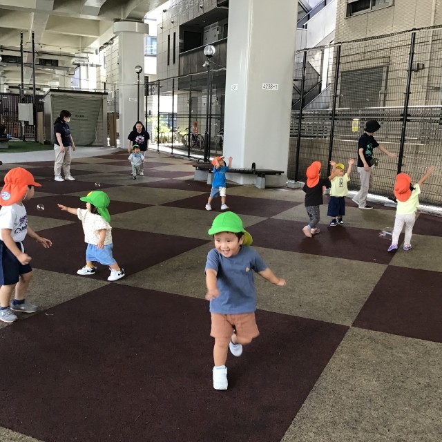 散歩(1・2歳児) 公開日 2025/10/03 更新日 2025/10/03 かきっこ通信 涼しくなったので久しぶりに散歩へ行きました。みんな嬉しそうにシャボン玉を追いかけたり、ボールやフープなどで思いっ切り遊びました。