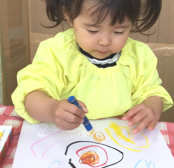 製作(2歳児) 公開日 2025/05/07 更新日 2025/05/07 かきっこ通信 初めて自分のクレヨンを使って製作を行ないました。画用紙いっぱいに好きなように絵を描き、絵の具を塗って『はじき絵』をしました。